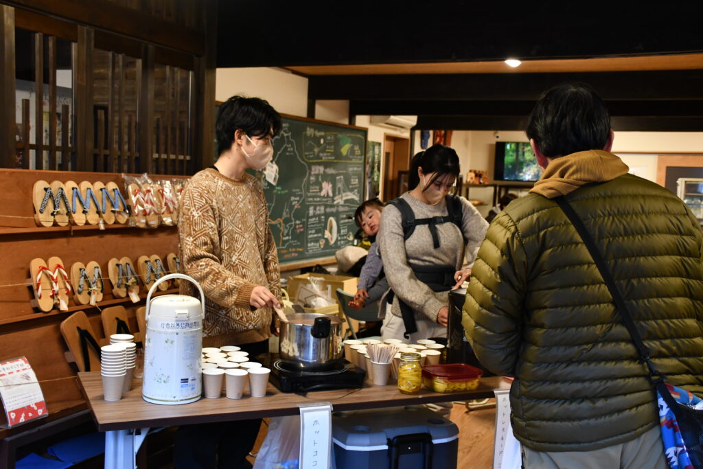 ・観光案内所で豚汁のふるまい、南木曽中学校販売部によるハンドメイド作品の販売 ※無くなり次第終了