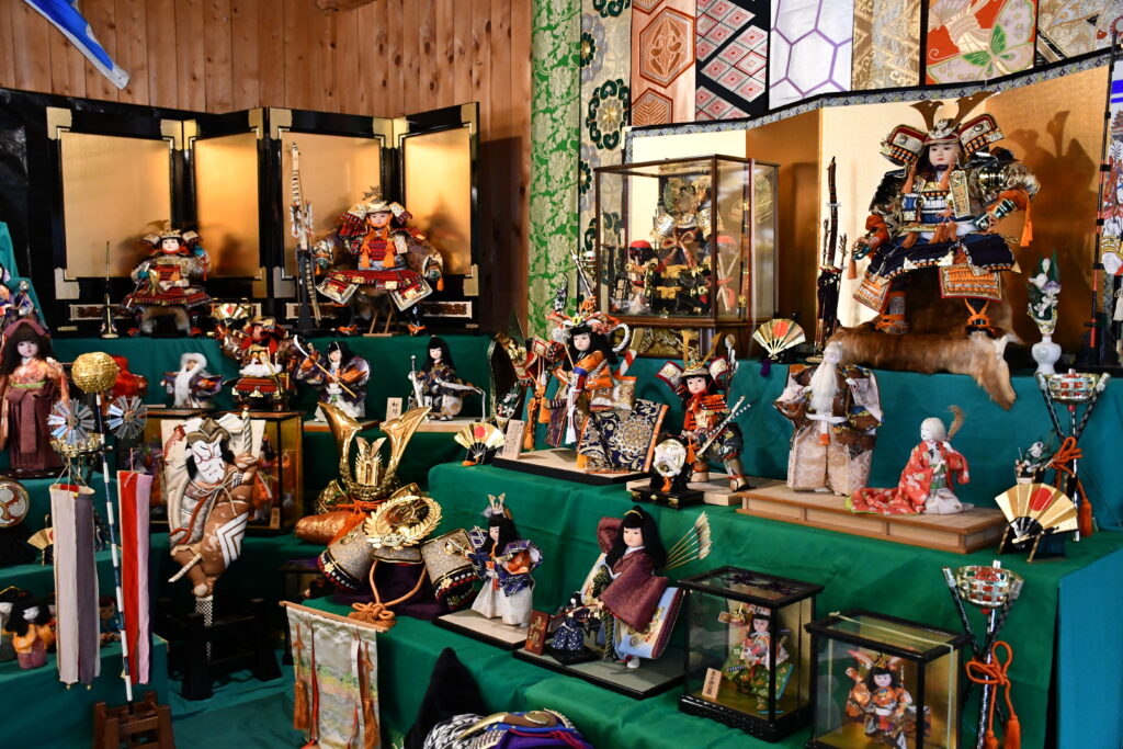 妻籠宿内の無料休憩所「ふれあい館」にて、五月人形を展示しています!