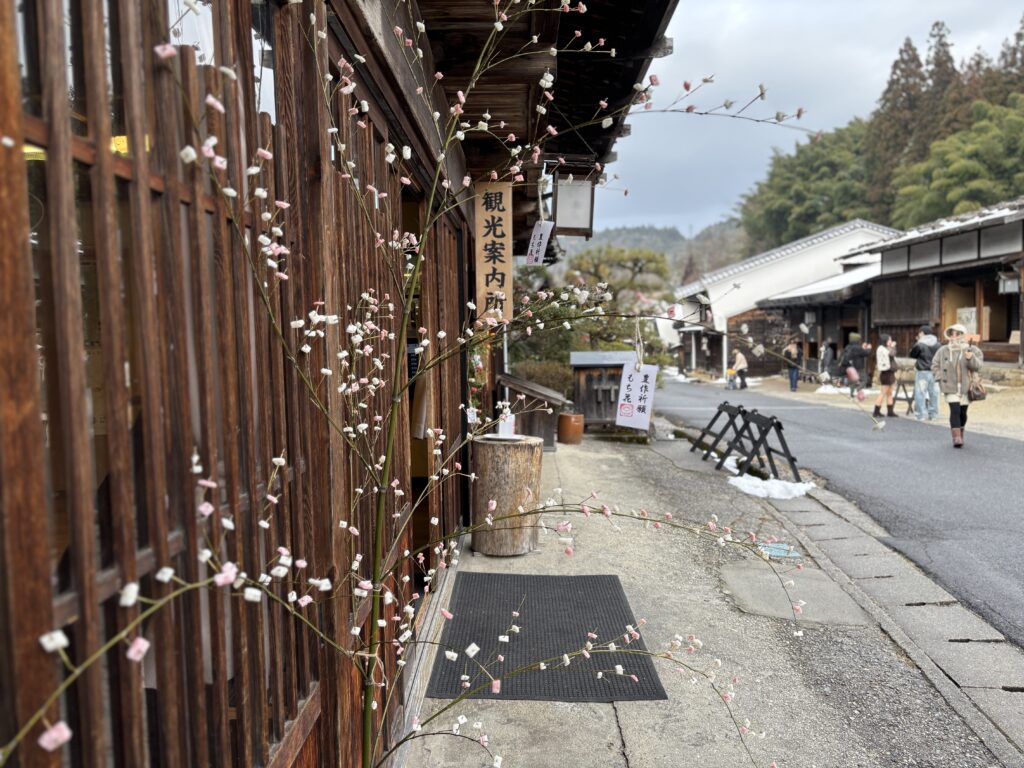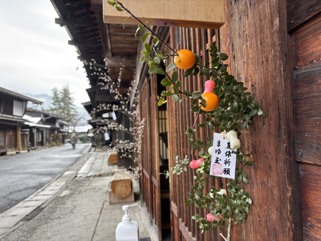 大きな飾りは、妻籠観光案内所、ふれあい館、脇本陣奥谷に、小さな飾りは各店舗の前にあります。この時期ならではの妻籠宿の景色をお楽しみください✨